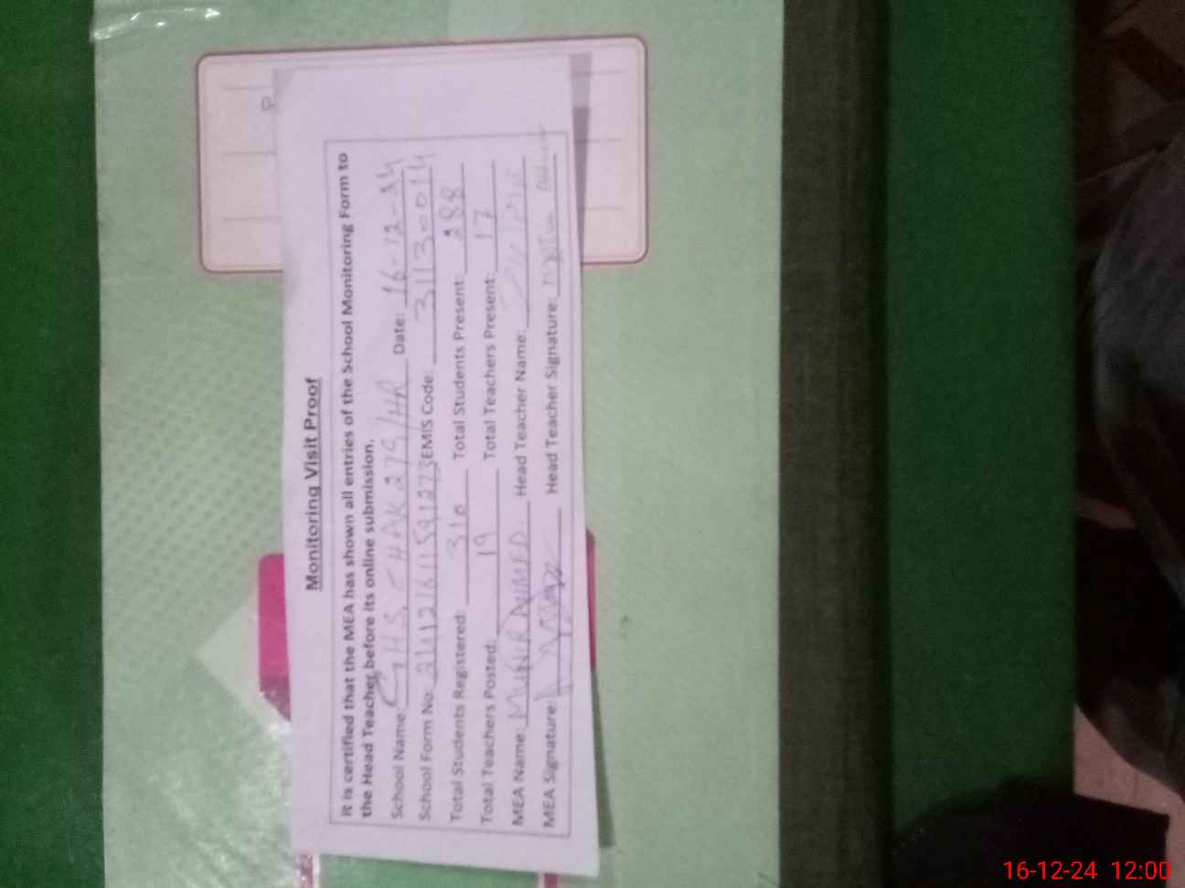 | EMIS Code: 31130014 | Name of School: GHS CHAK 279/HR | |||