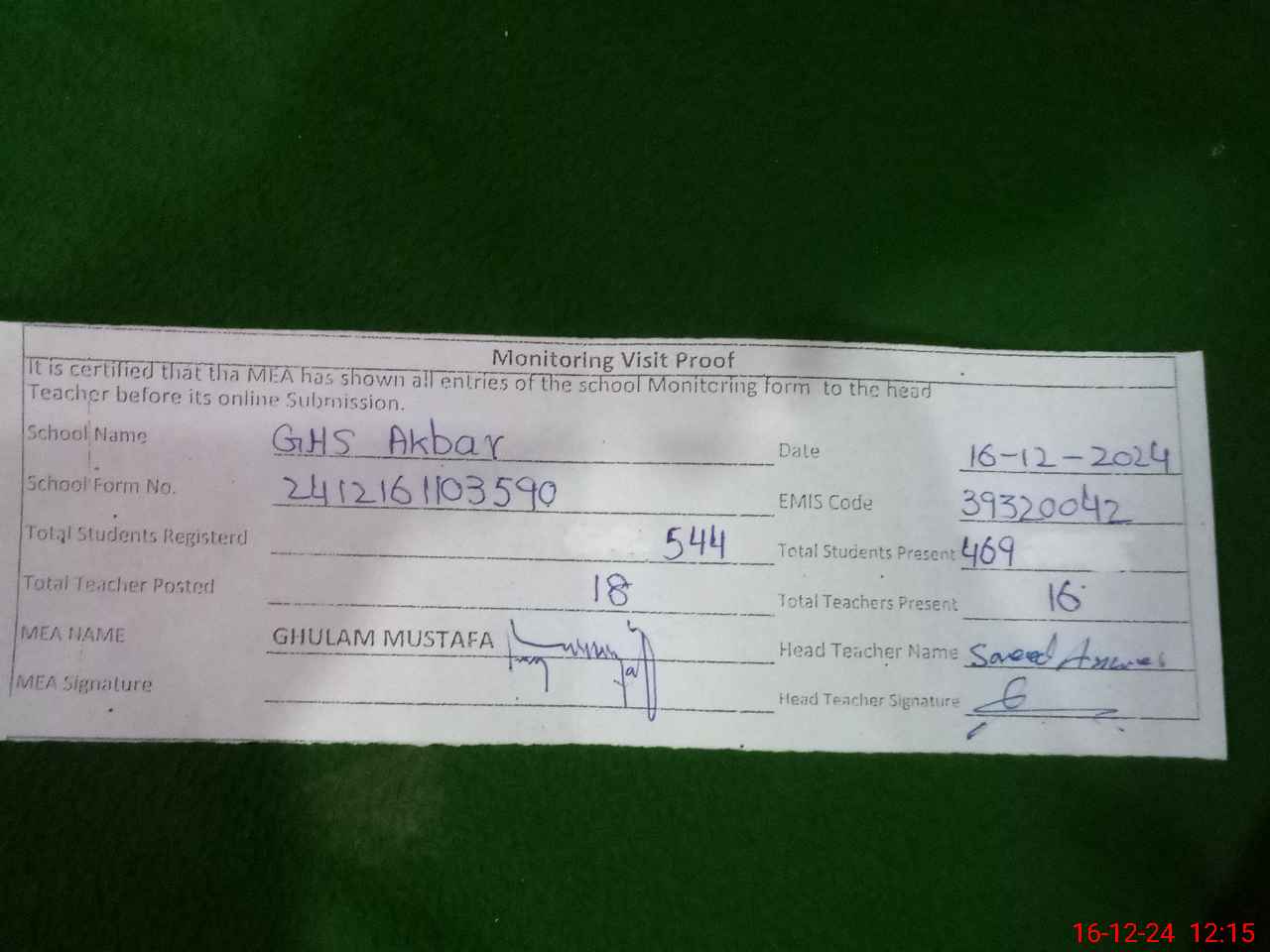 | EMIS Code: 39320042 | Name of School: GHS AKBAR | |||