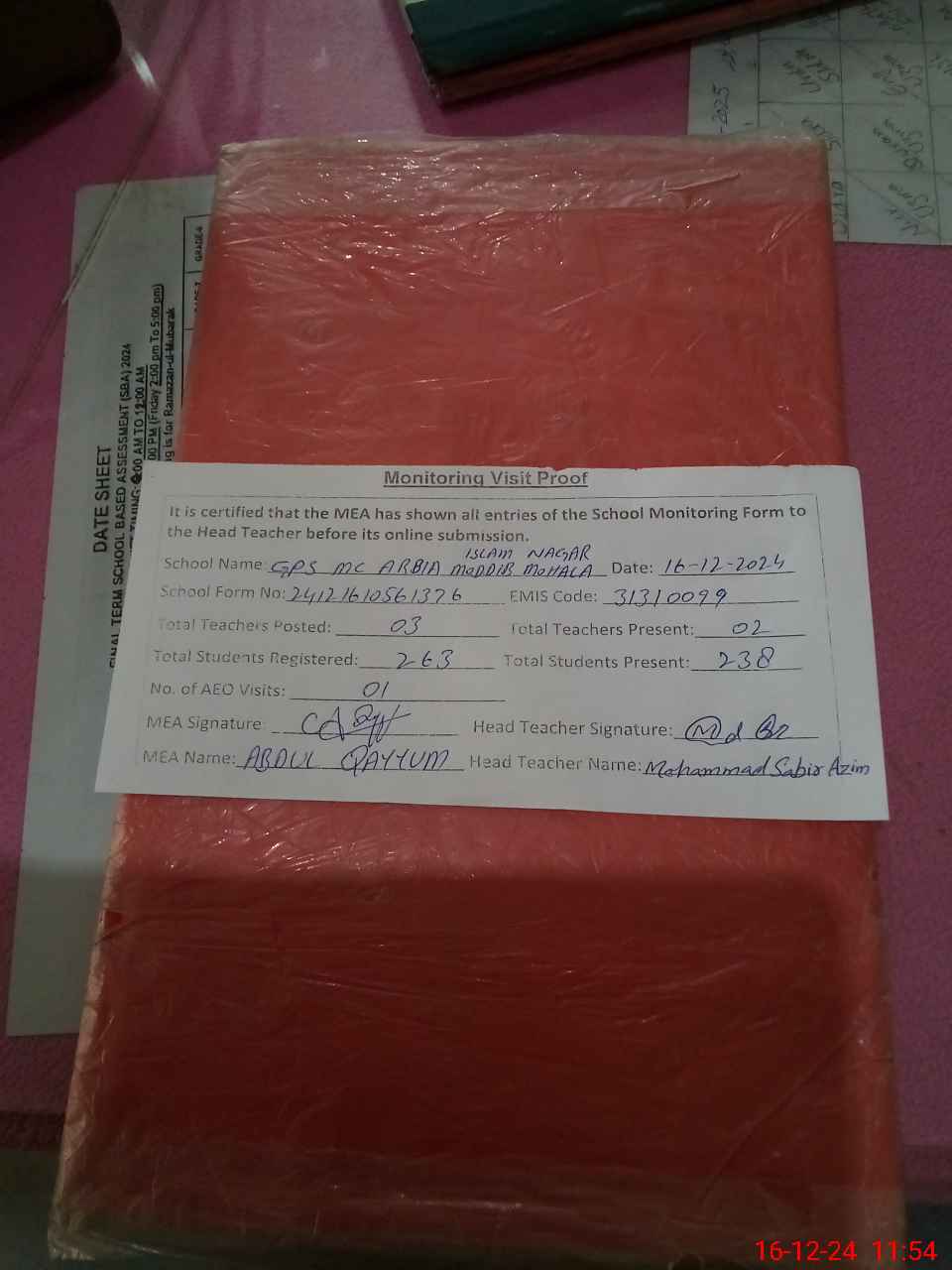 | EMIS Code: 31310099 | Name of School: GPS MC ARBIA MODDIB MOHALLA ISLAM NAGAR | |||