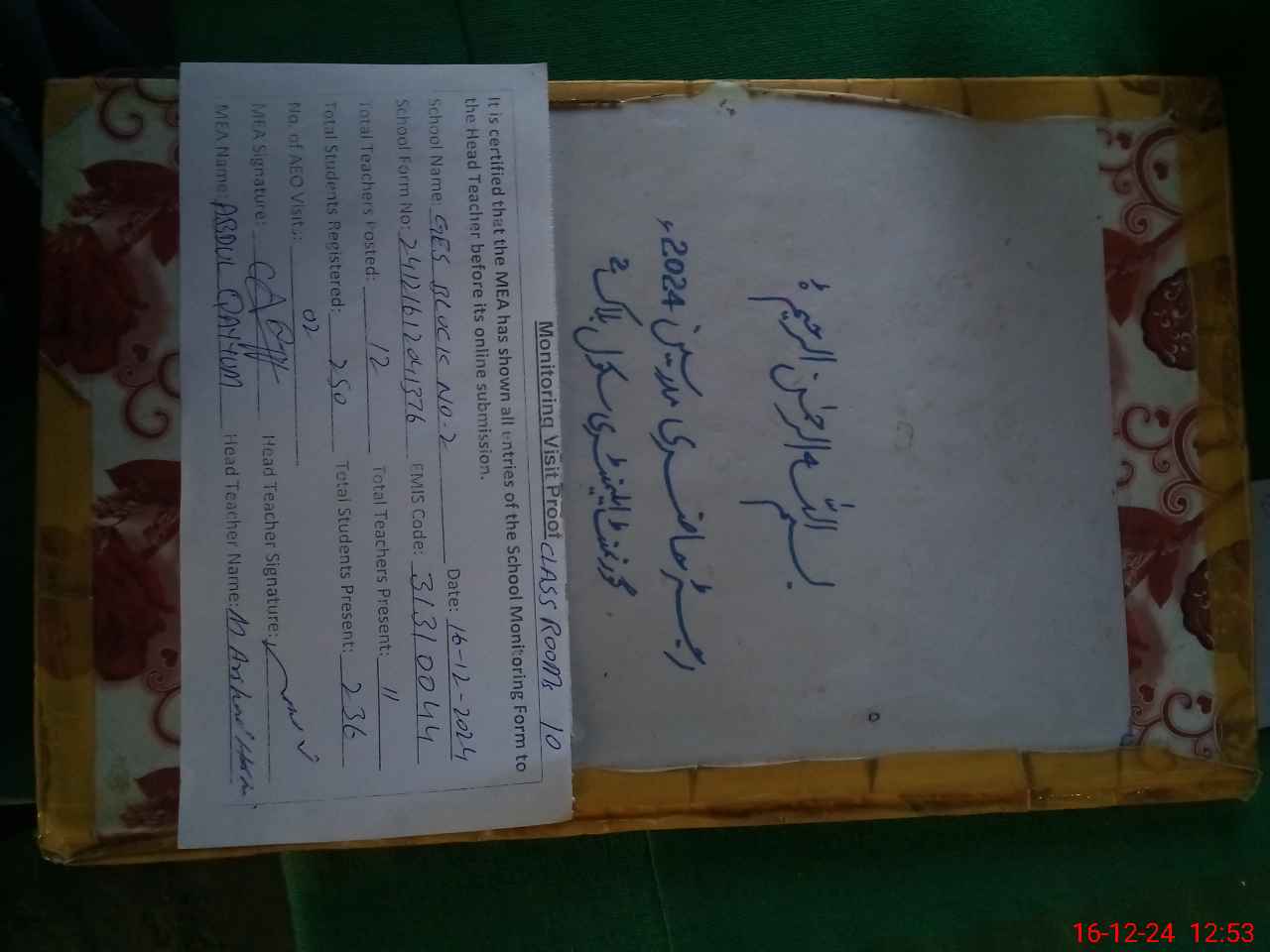 | EMIS Code: 31310044 | Name of School: GES BLOCK NO. 2 KHANPUR | |||
