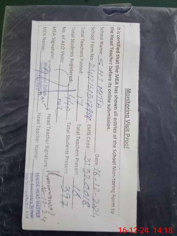 | EMIS Code: 31320018 | Name of School: GHS METLA | |||
