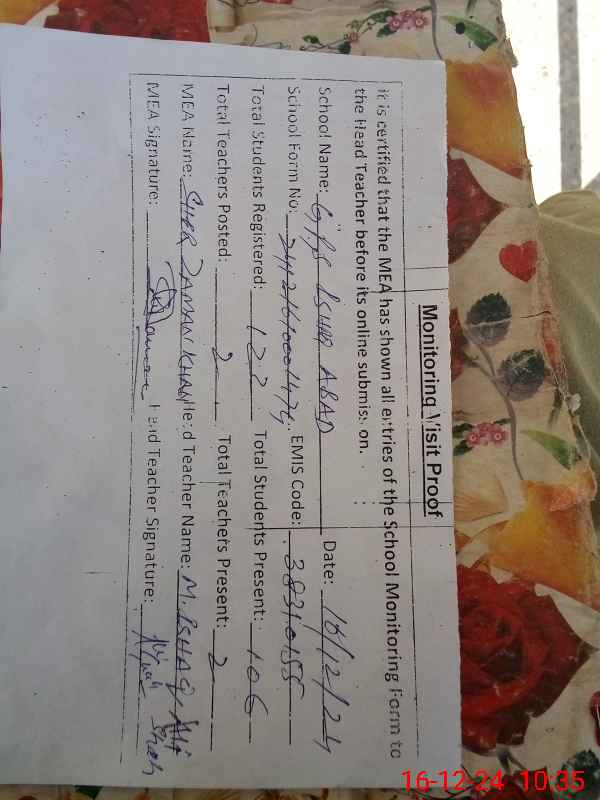 | EMIS Code: 38310155 | Name of School: GPS ISHAQ ABAD | |||