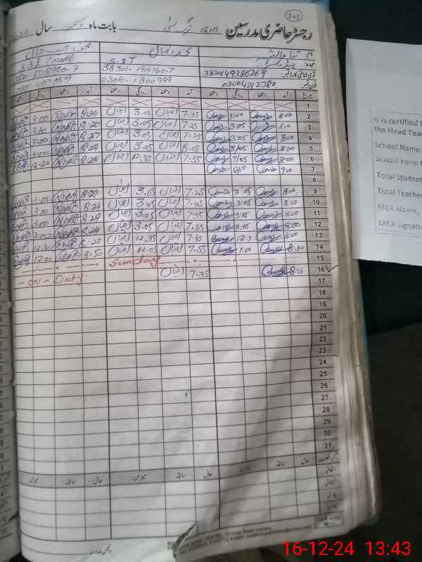 | Name: Sa**** Designation: (School Headmaster's/Headmistress's) SST Phone/Cell Number: 03**** |
