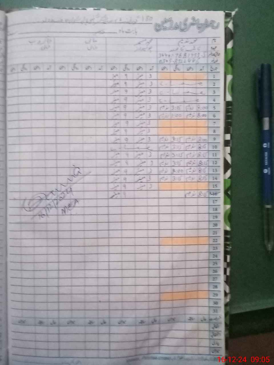 | CNIC | Full Name | Designation | R/C | Absence During Last Calender Month |