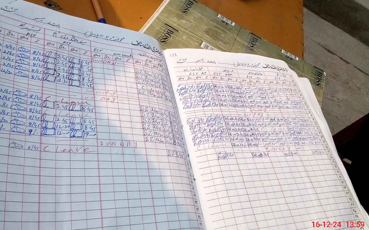 | CNIC | Full Name | Designation | R/C | Absence During Last Calender Month |