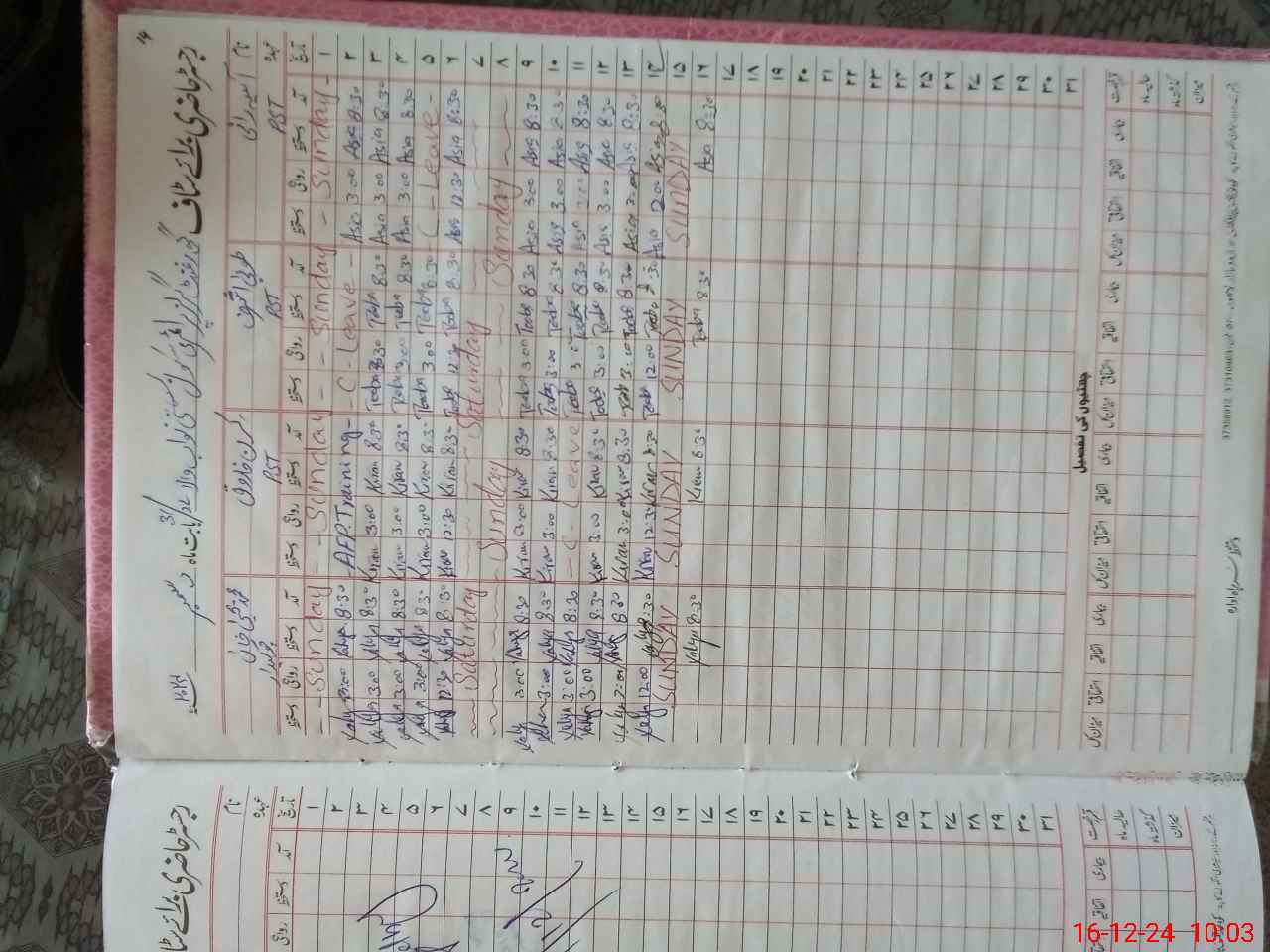 | Leave | Duty | Absent | Maternity | Medical | Ex- Pak |
