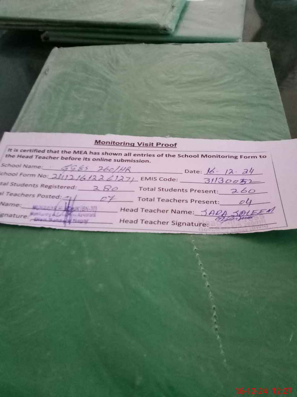 | EMIS Code: 31130052 | Name of School: GGES 260/HR | |||
