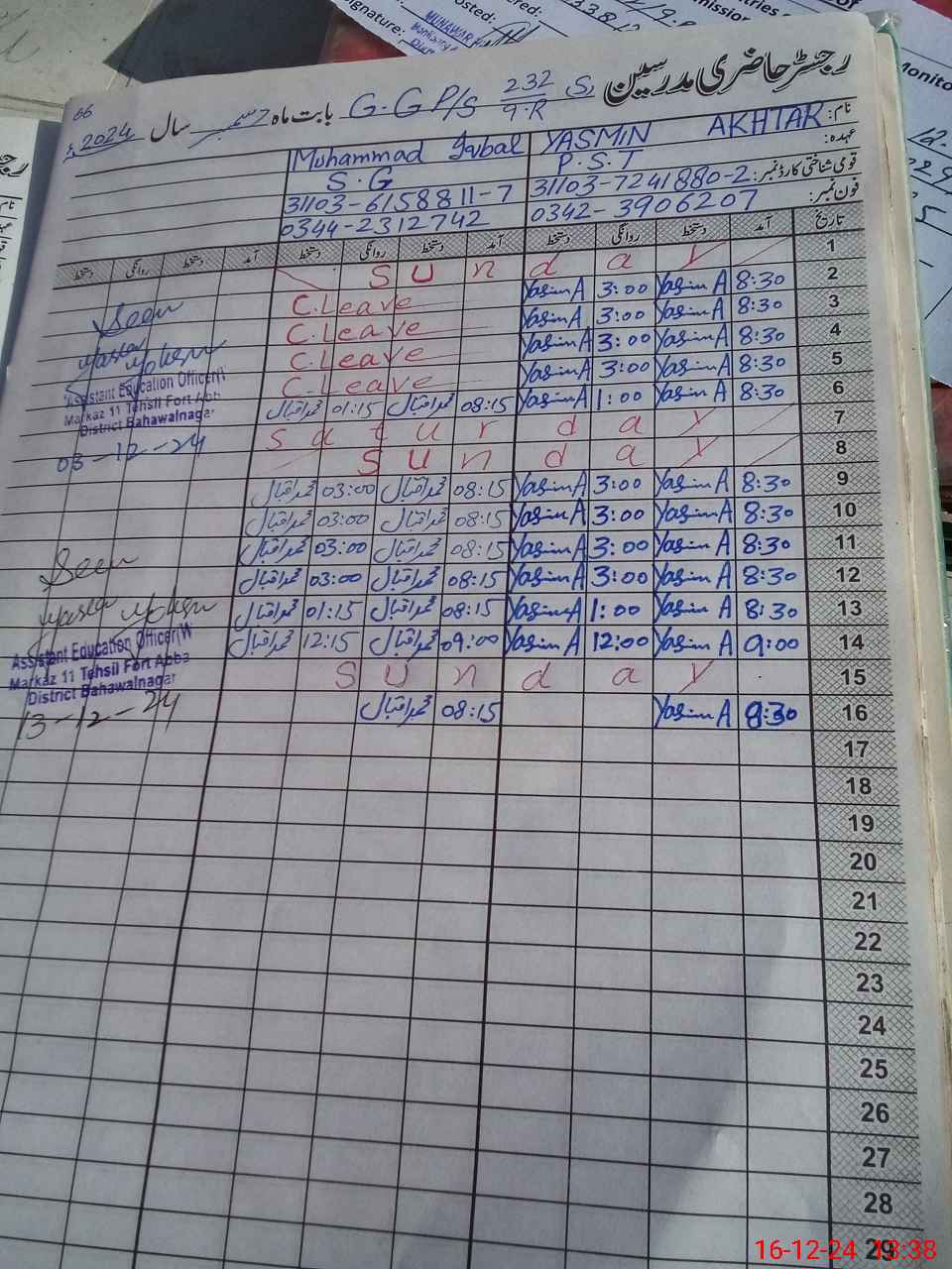 | District: BAHAWALNAGAR | Tehsil: FORT ABBAS | Markaz: FTS-XI-FEMALE | Level: Primary | |