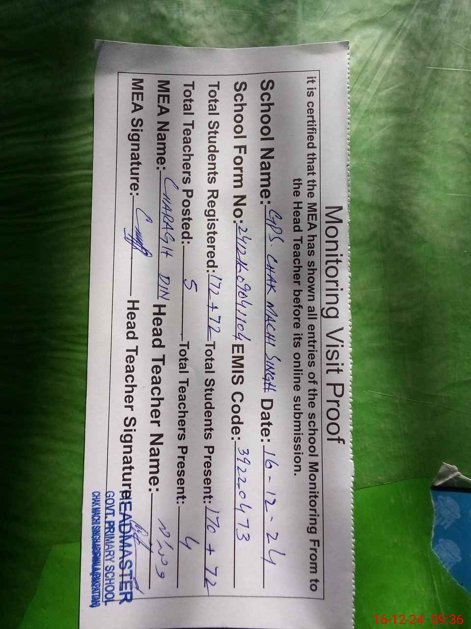 | EMIS Code: 39220473 | Name of School: GPS CHAK MACHI SINGH | |||