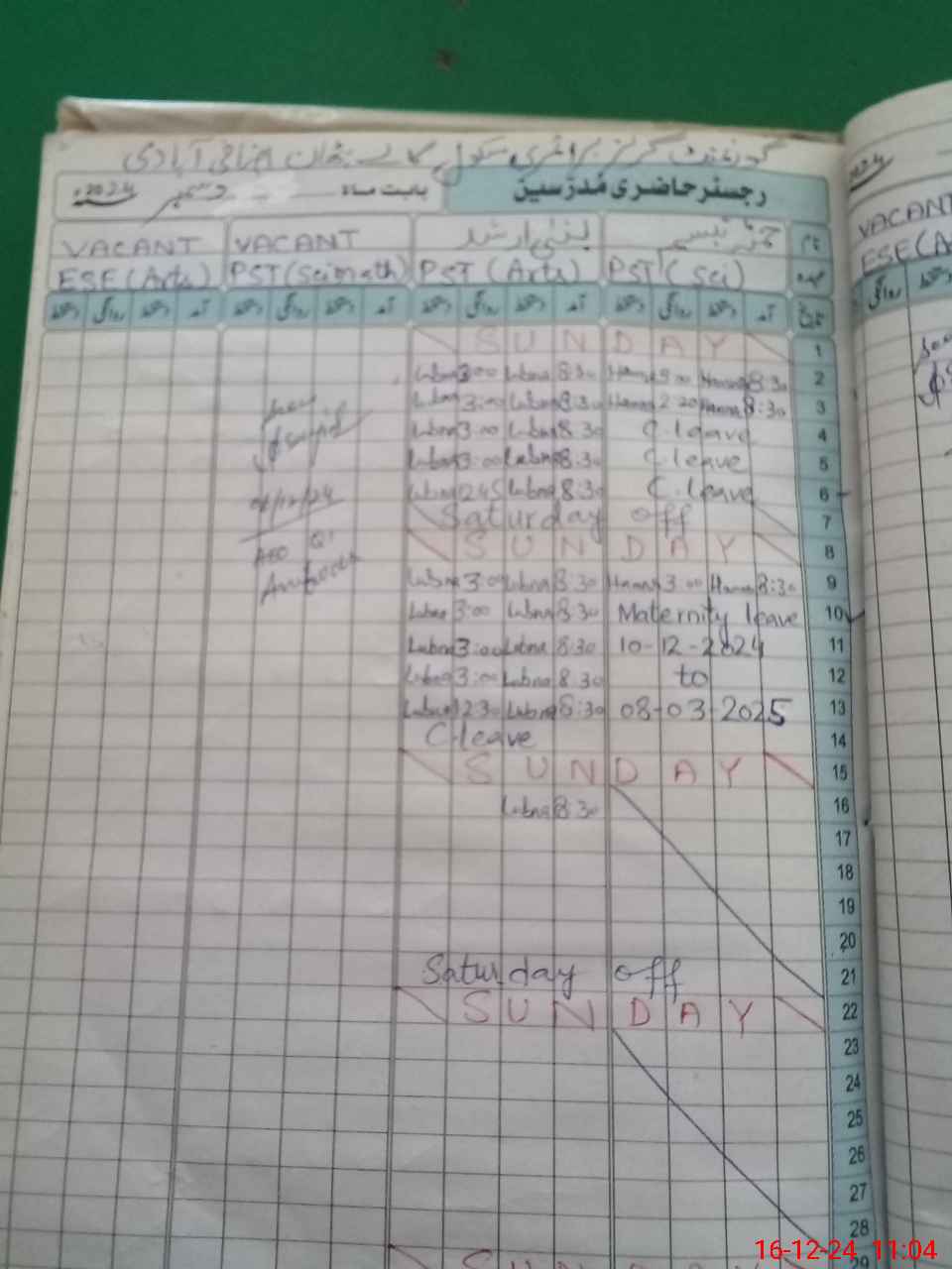 | Leave | Duty | Absent | Maternity | Medical | Ex- Pak |