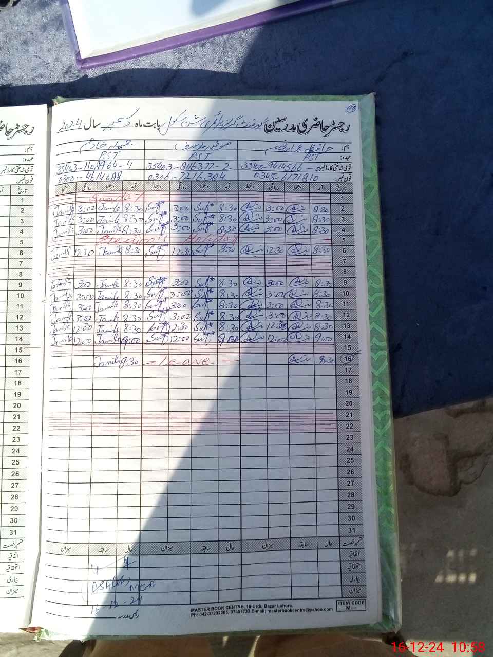 | CNIC | Full Name | Designation | R/C | Absence During Last Calender Month |