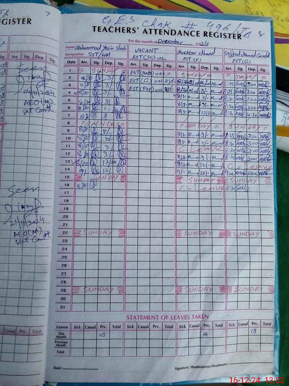 | Name: MU**** YA**** Designation: (School Headmaster's/Headmistress's) SST Phone/Cell Number: 03**** |