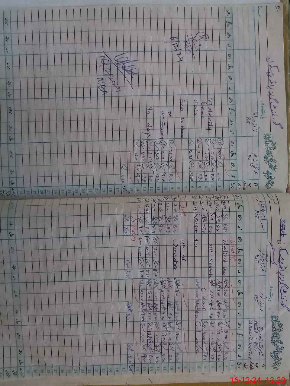| Leave | Duty | Absent | Maternity | Medical | Ex- Pak |