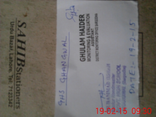 | EMIS Code: 38430018 | Name of School: GHS GHANGWAL | |||