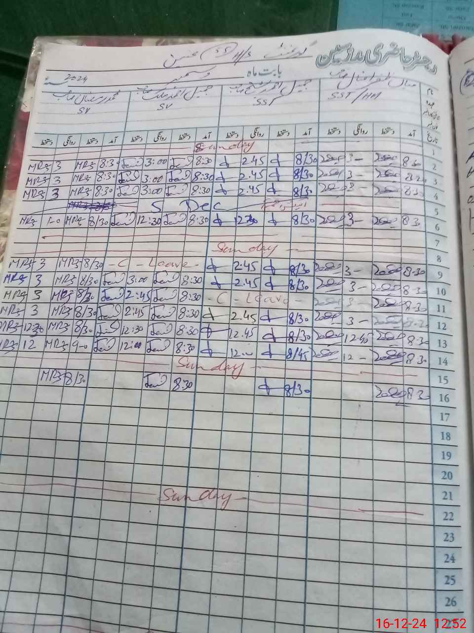 | CNIC | Full Name | Designation | R/C | Absence During Last Calender Month |