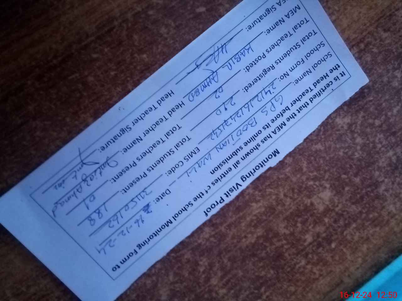 | Certified that this School was Inspected by the Undersigned MEA/DMO Today and the Information Stated Above is as Per Record. | |||||