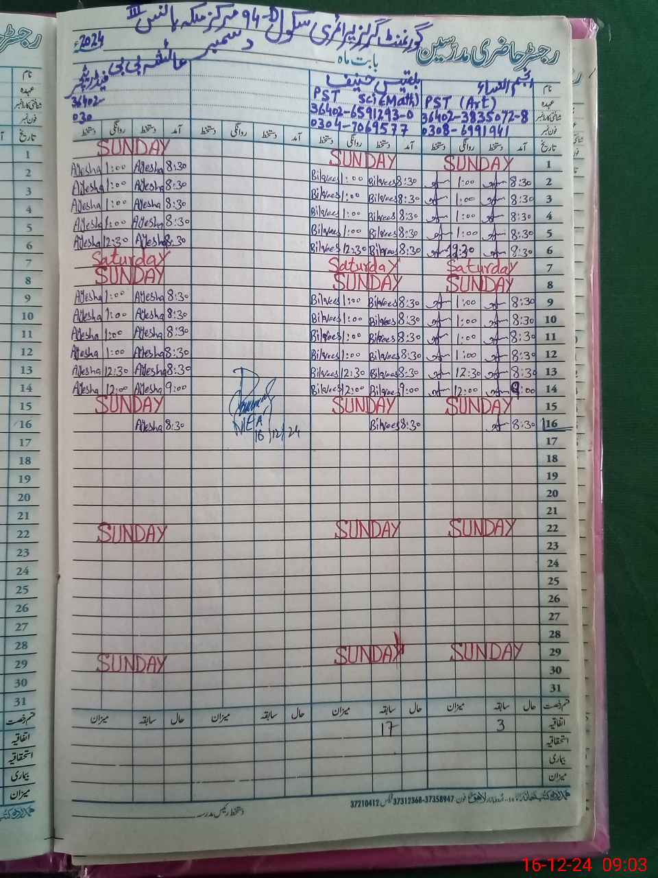 | Name: AN**** UNNI**** Designation: (School Headmaster's/Headmistress's) PST Phone/Cell Number: 03**** |