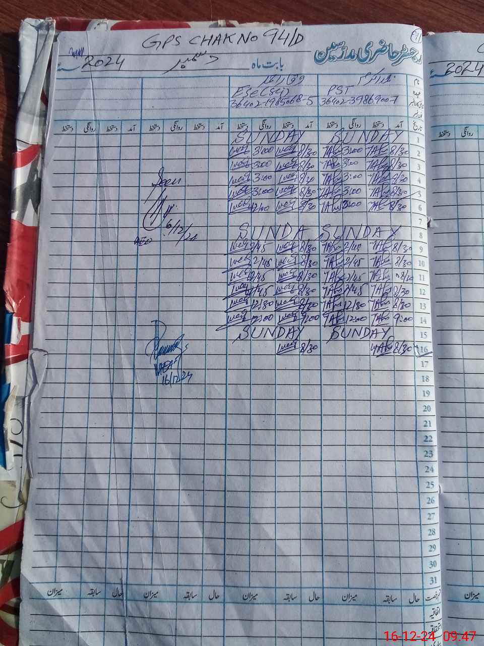 | CNIC | Full Name | Designation | R/C | Absence During Last Calender Month |