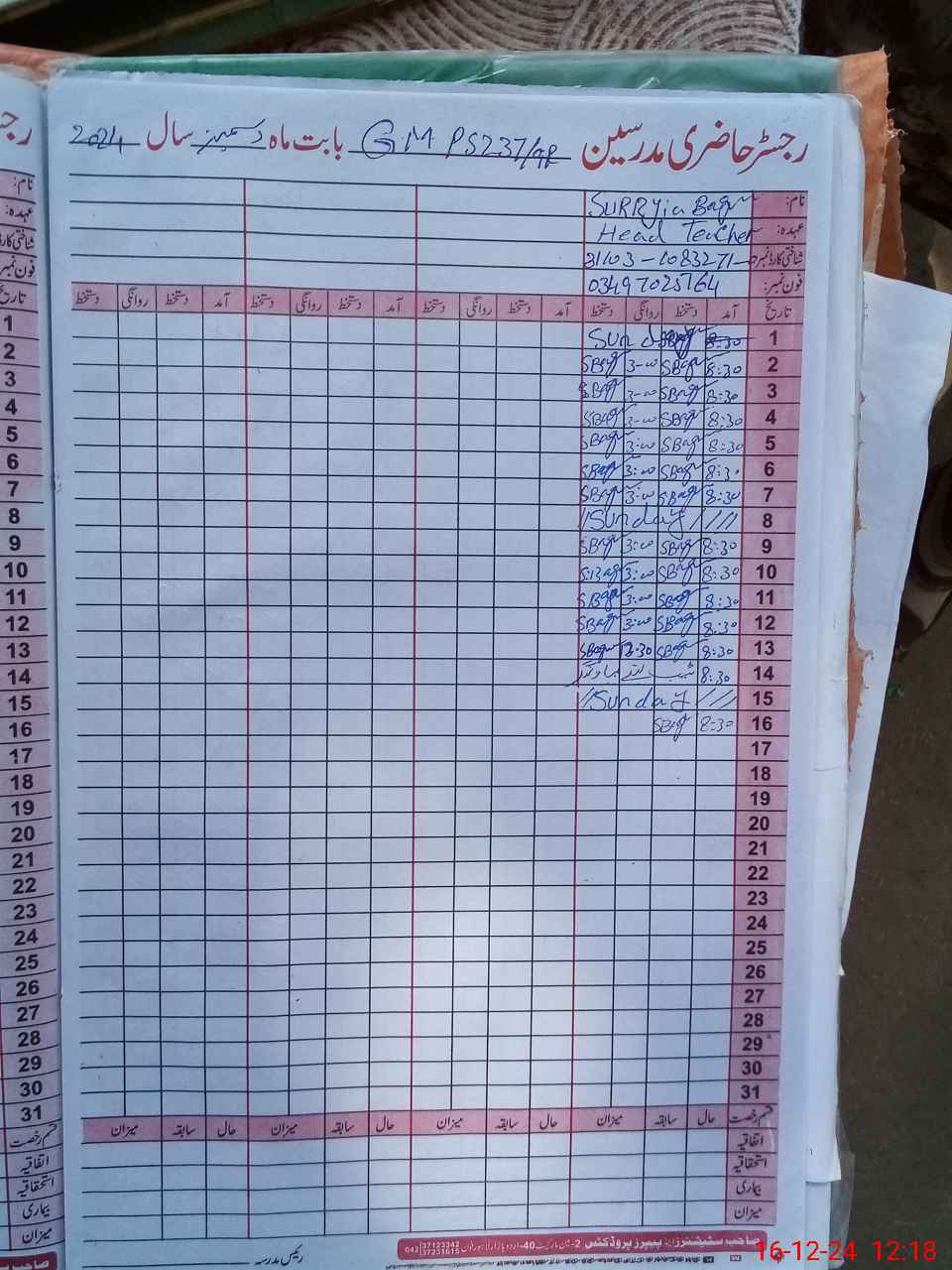 | Name: Su**** Be**** Designation: (School Headmaster's/Headmistress's) PST Phone/Cell Number: 03**** |
