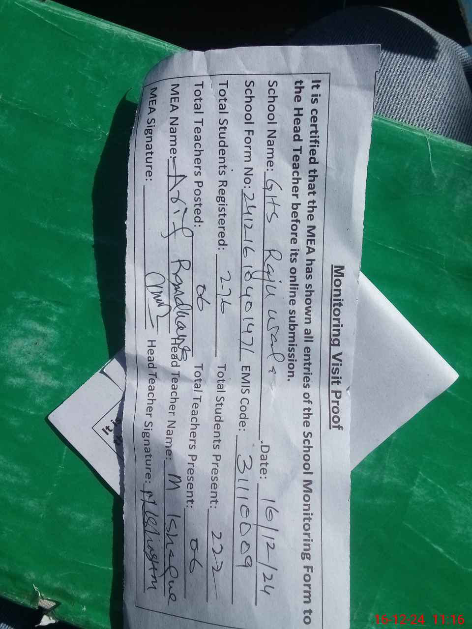 | EMIS Code: 31110009 | Name of School: GHS RAJU WALA | |||