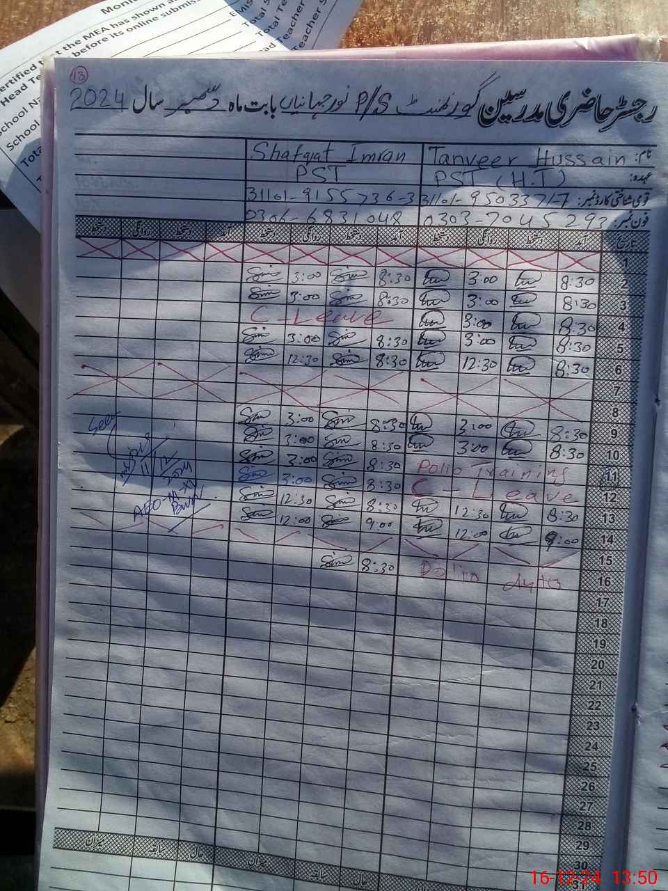 | Name: Ta**** Hu**** Designation: (School Headmaster's/Headmistress's) PST Phone/Cell Number: 03**** |