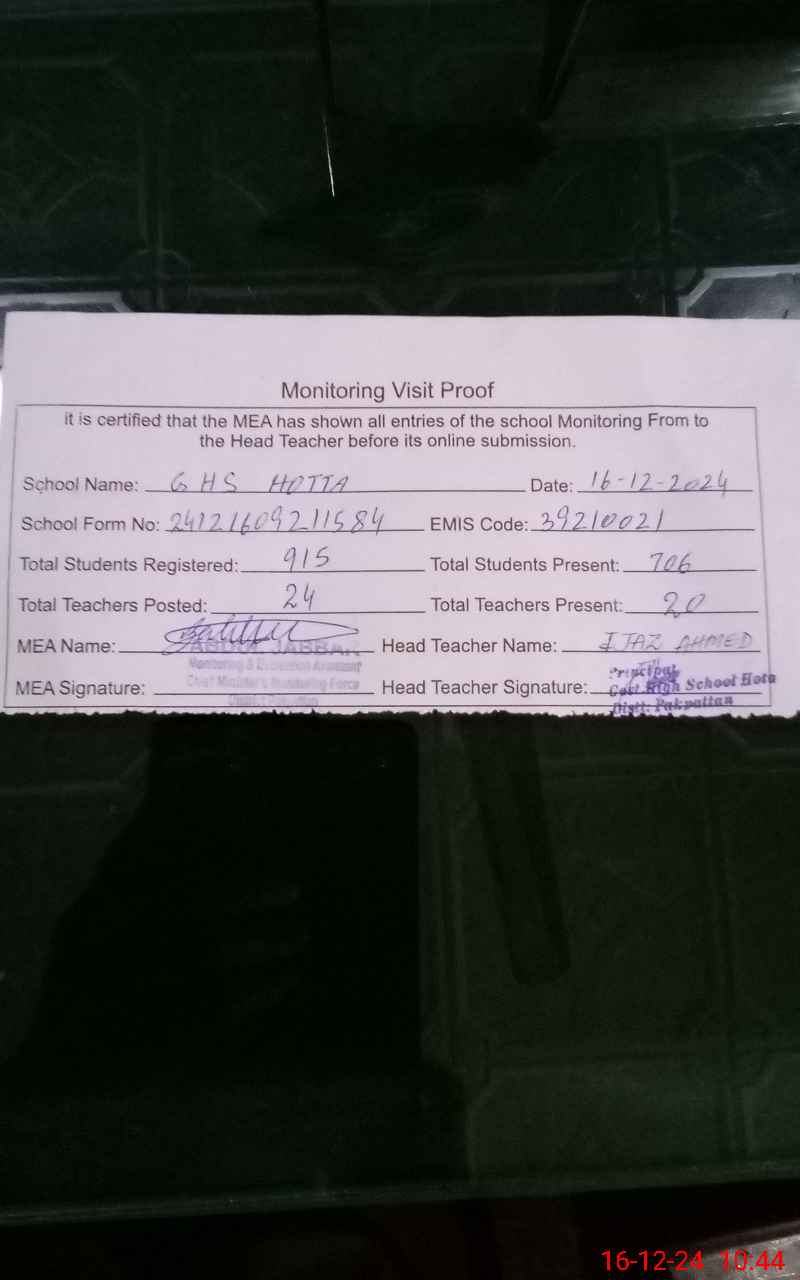 | EMIS Code: 39210021 | Name of School: GHS HOTTA | |||