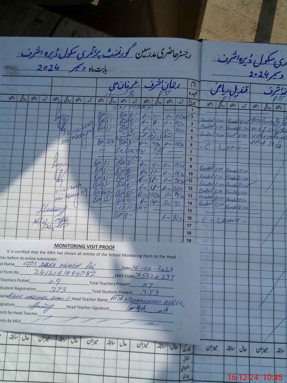 | EMIS Code: 35420297 | Name of School: GPS DERA ASHRAF PUR | |||
