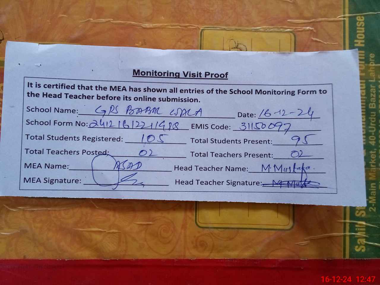 | EMIS Code: 31150097 | Name of School: GPS BABAL WALA | |||