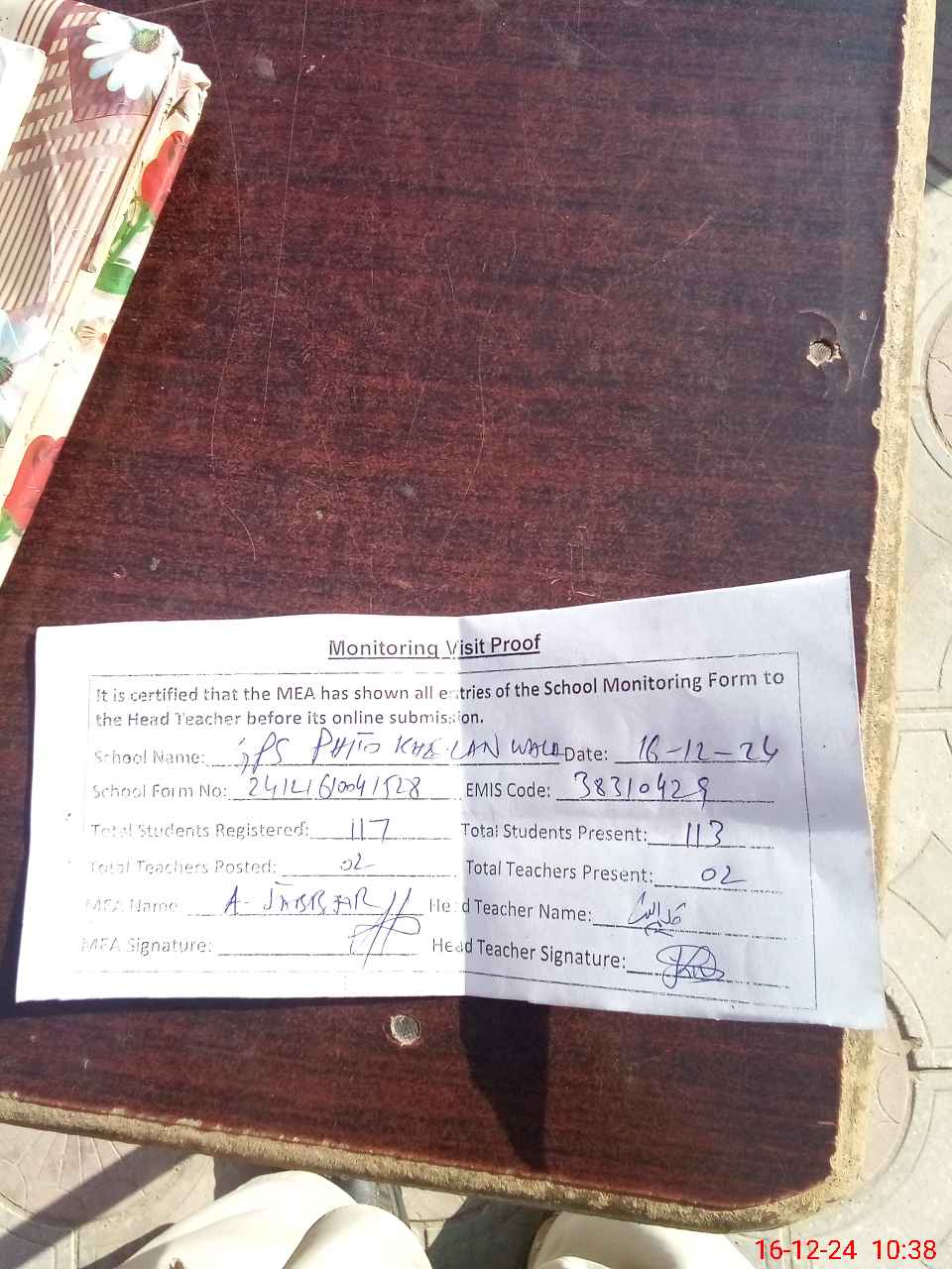 | EMIS Code: 38310429 | Name of School: GPS PHITO KHELAN WALA | |||