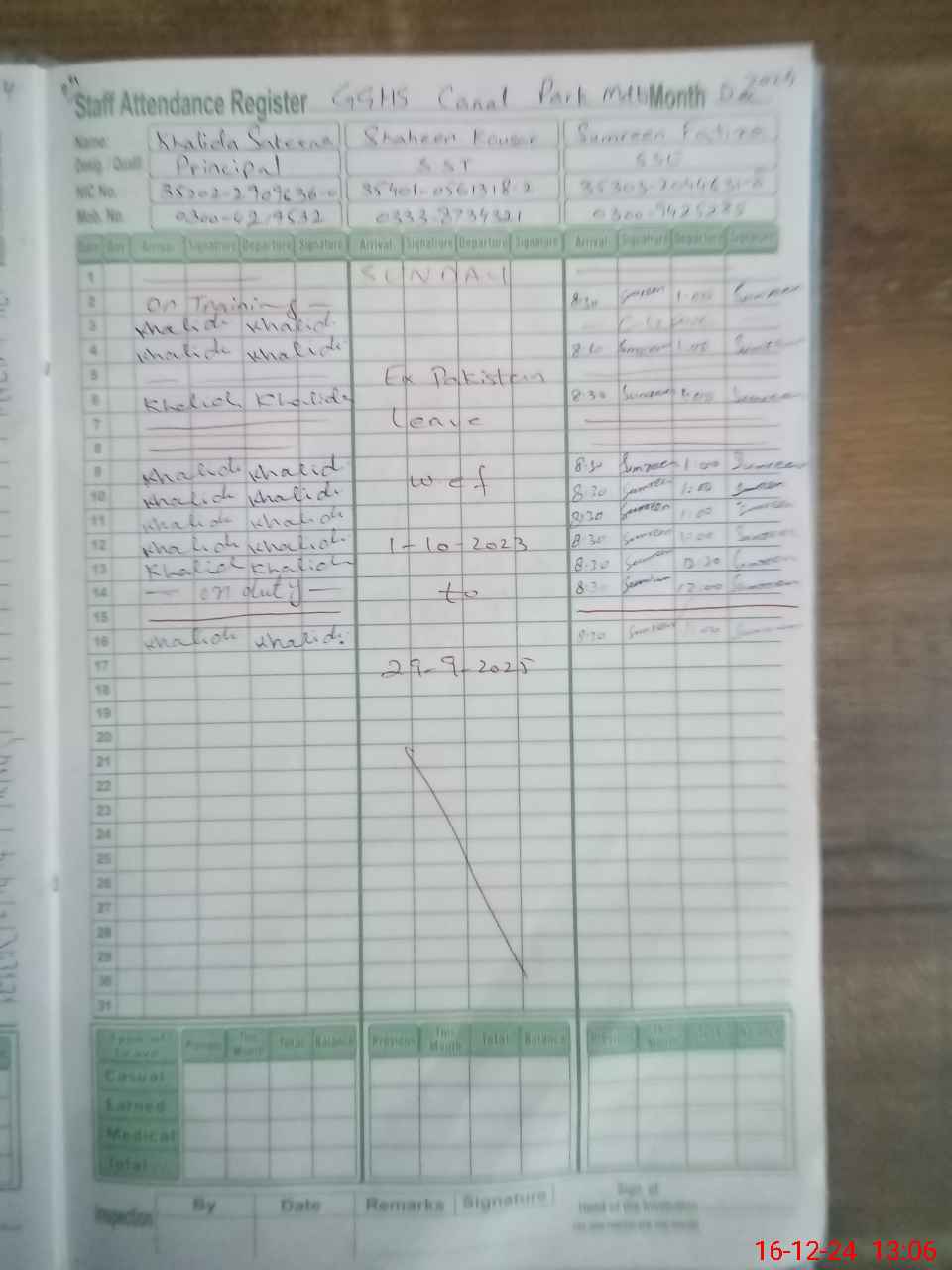 | Name: KH**** SA**** Designation: (School Headmaster's/Headmistress's) Principal Phone/Cell Number: 03**** |
