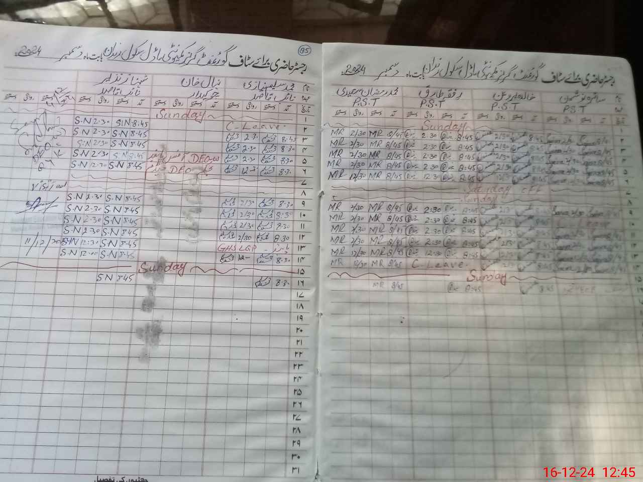 | CNIC | Full Name | Designation | R/C | Absence During Last Calender Month |