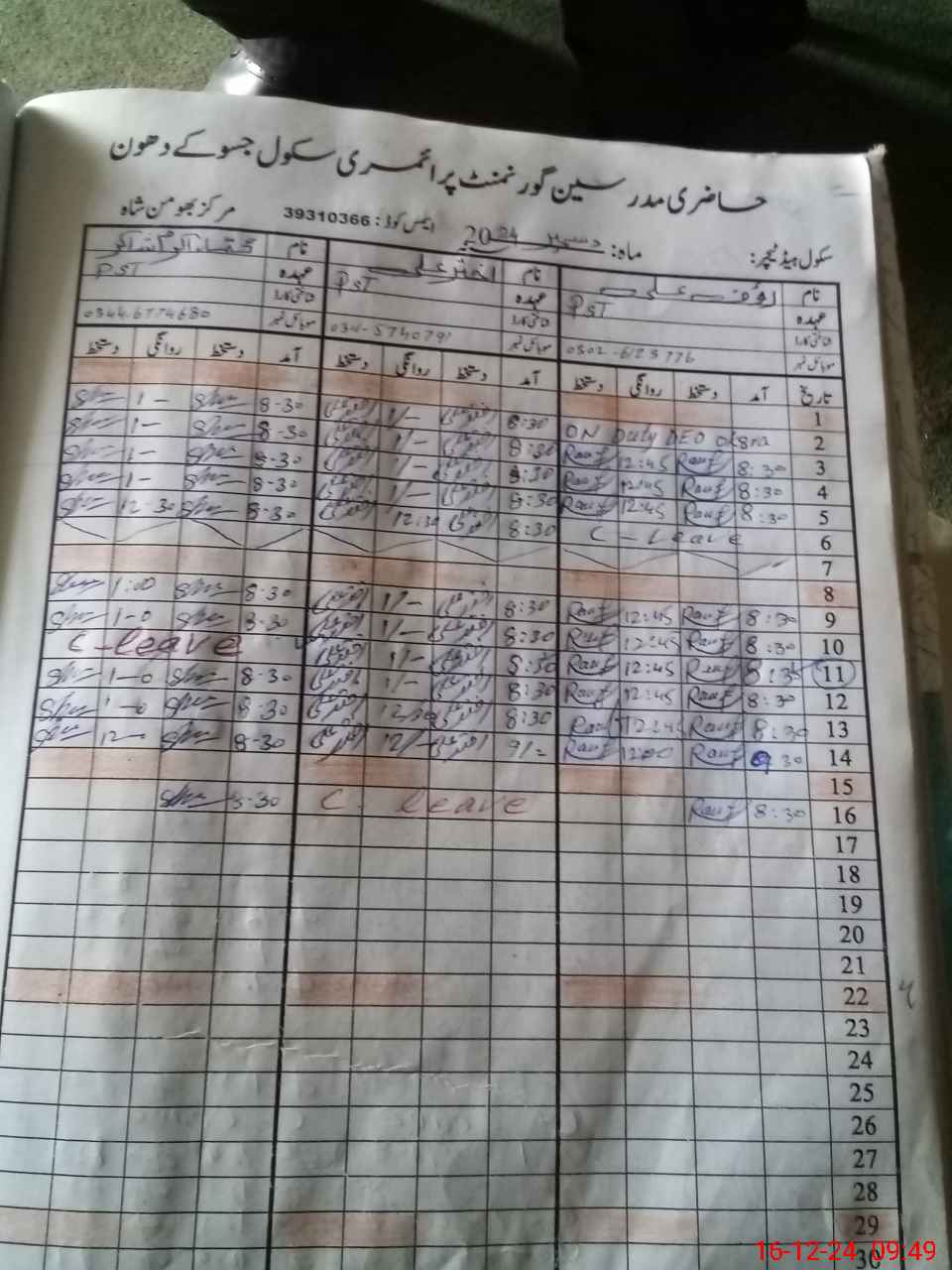| Name: RA**** AL**** Designation: (School Headmaster's/Headmistress's) PST Phone/Cell Number: 03**** |