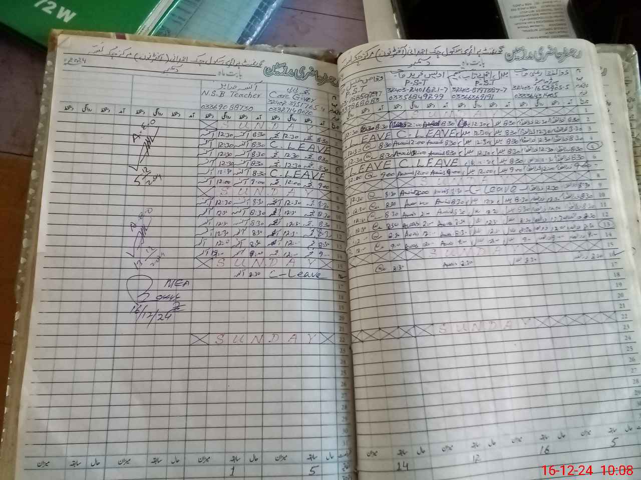 | CNIC | Full Name | Designation | R/C | Absence During Last Calender Month |