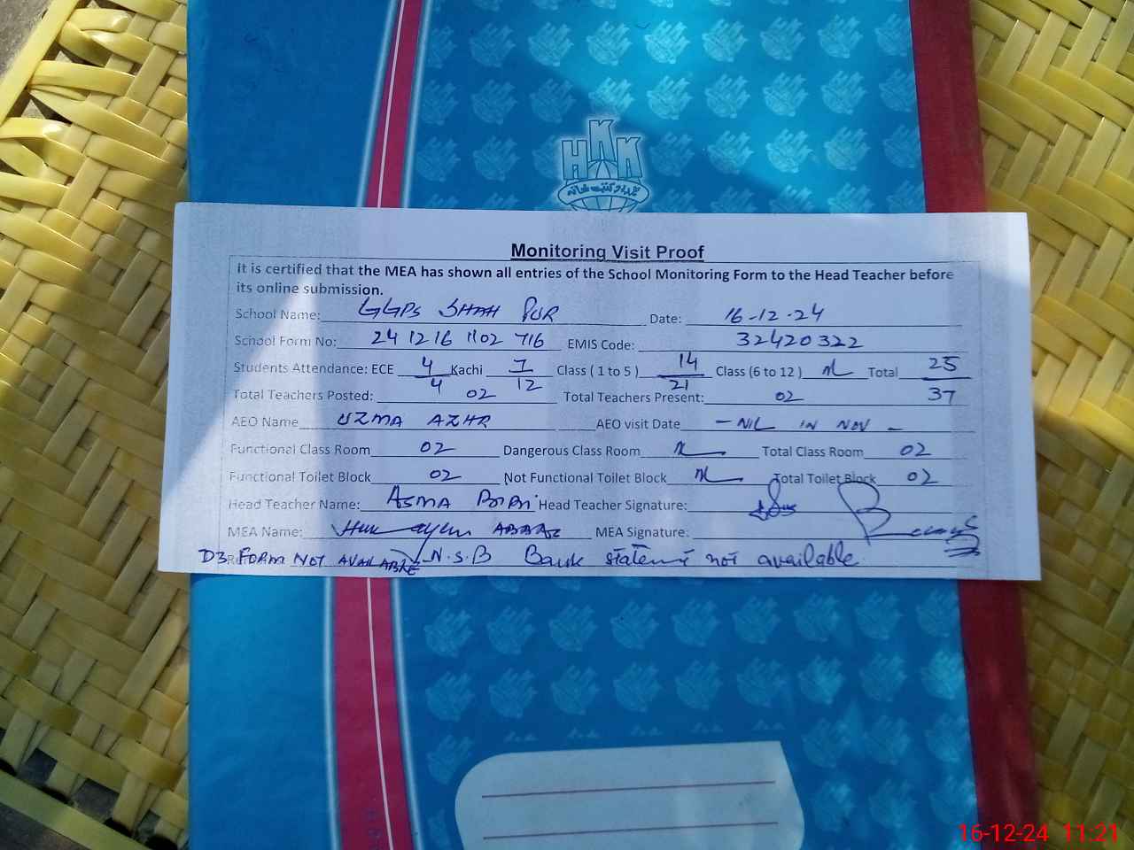 | EMIS Code: 32420322 | Name of School: GGPS SHAH PUR | |||