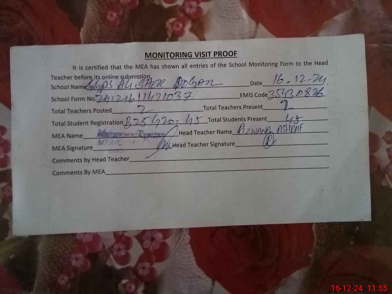 | EMIS Code: 35430826 | Name of School: GGPS ALI SHER DOGRAN | |||