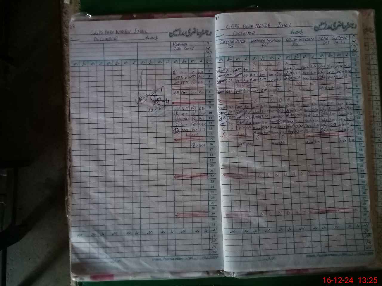 | CNIC | Full Name | Designation | R/C | Absence During Last Calender Month |