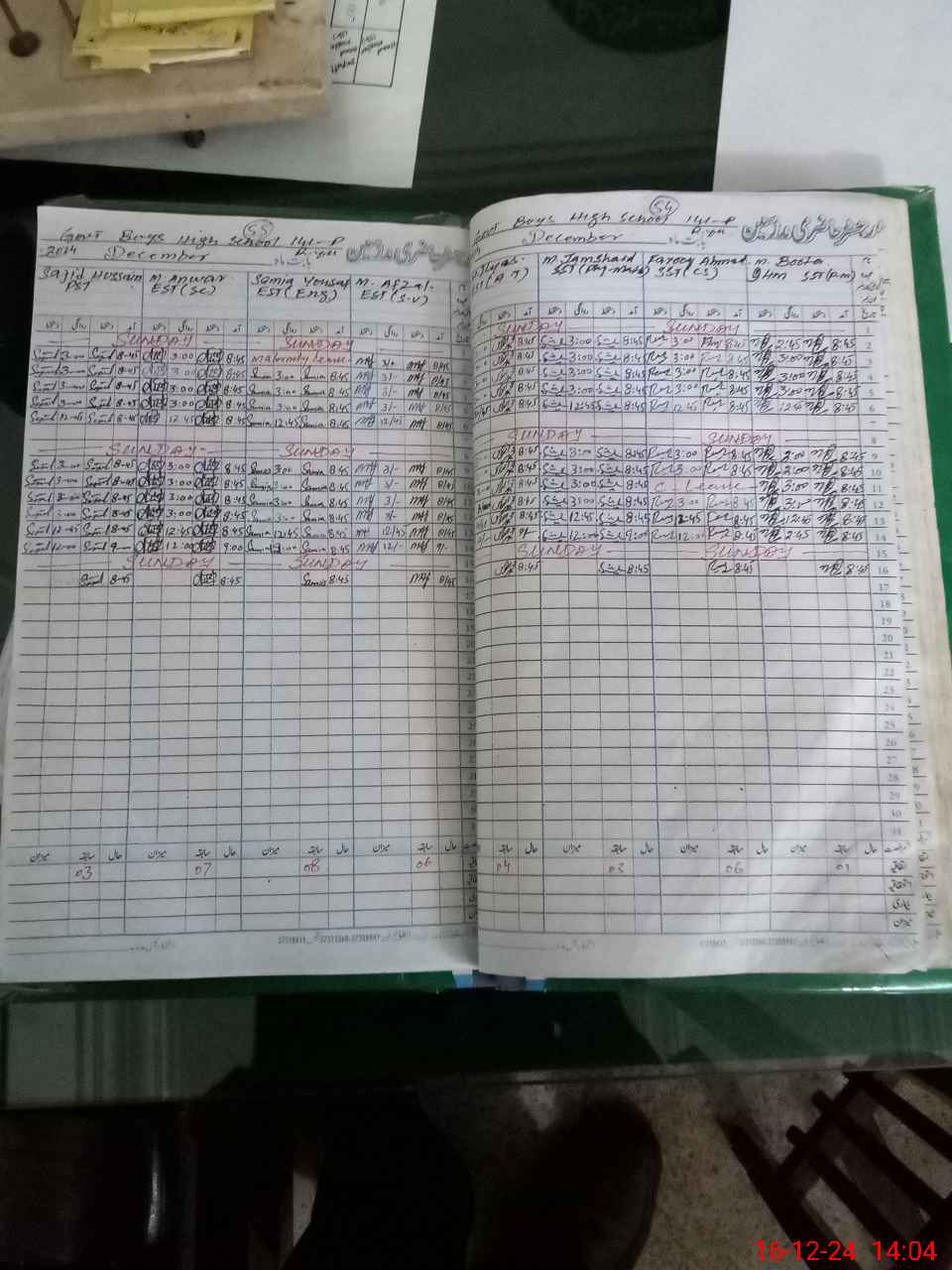 | CNIC | Full Name | Designation | R/C | Absence During Last Calender Month |