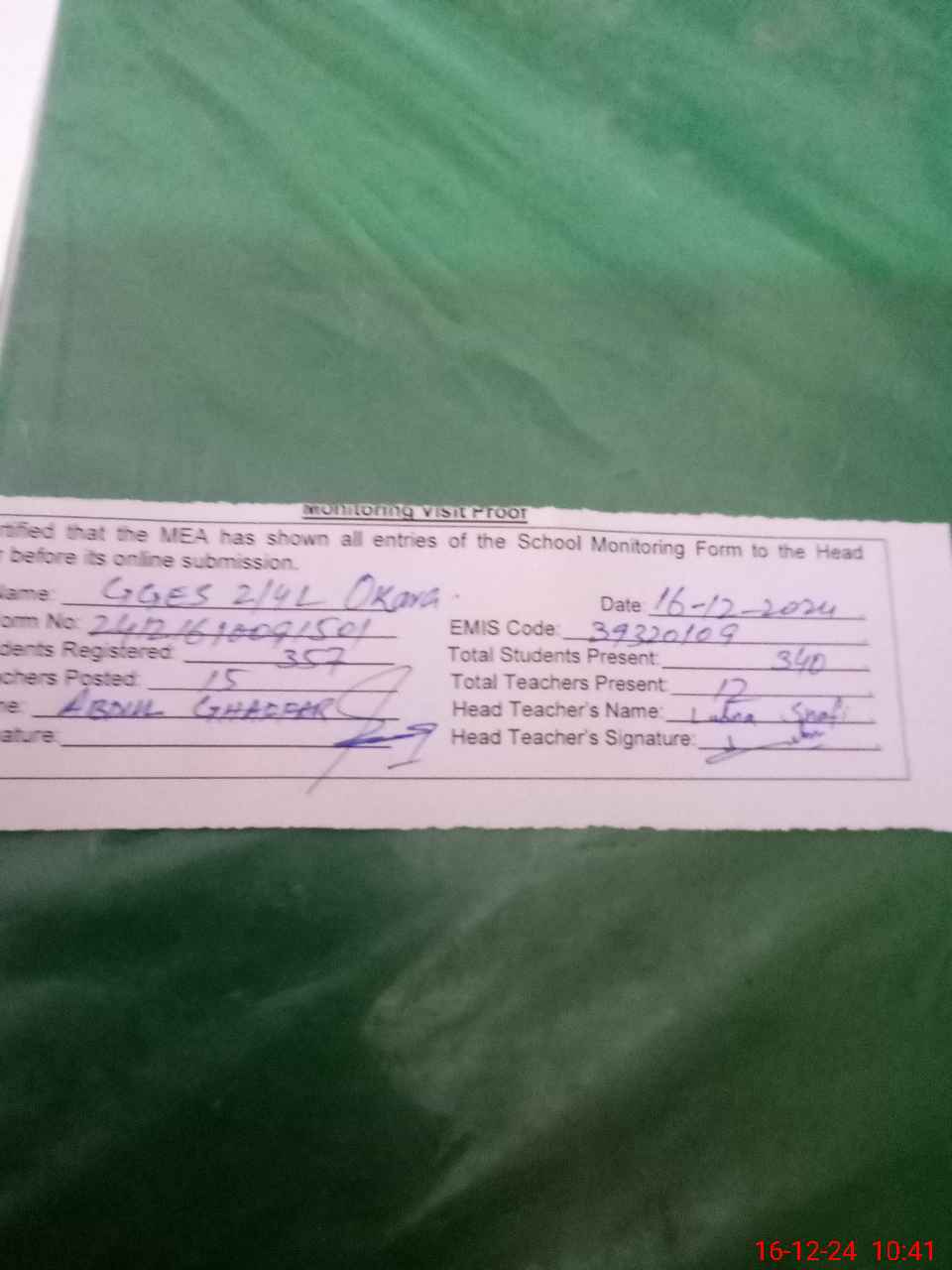 | Certified that this School was Inspected by the Undersigned MEA/DMO Today and the Information Stated Above is as Per Record. | |||||