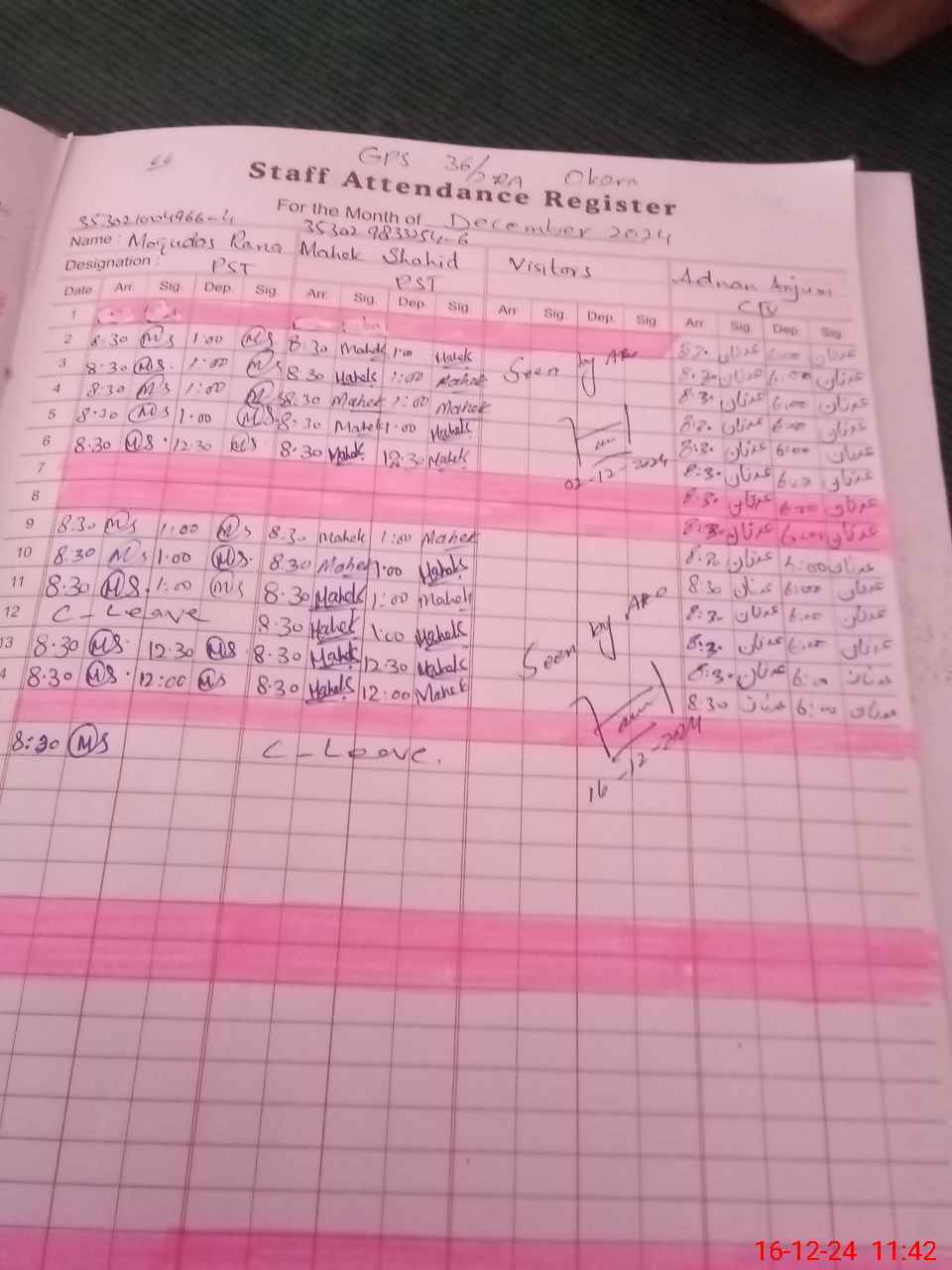| Remarks (Use Separate Page if Required): 01 pst teacher named Muhammad Yaseen temporarily attached from GPS 24 2R | |||||