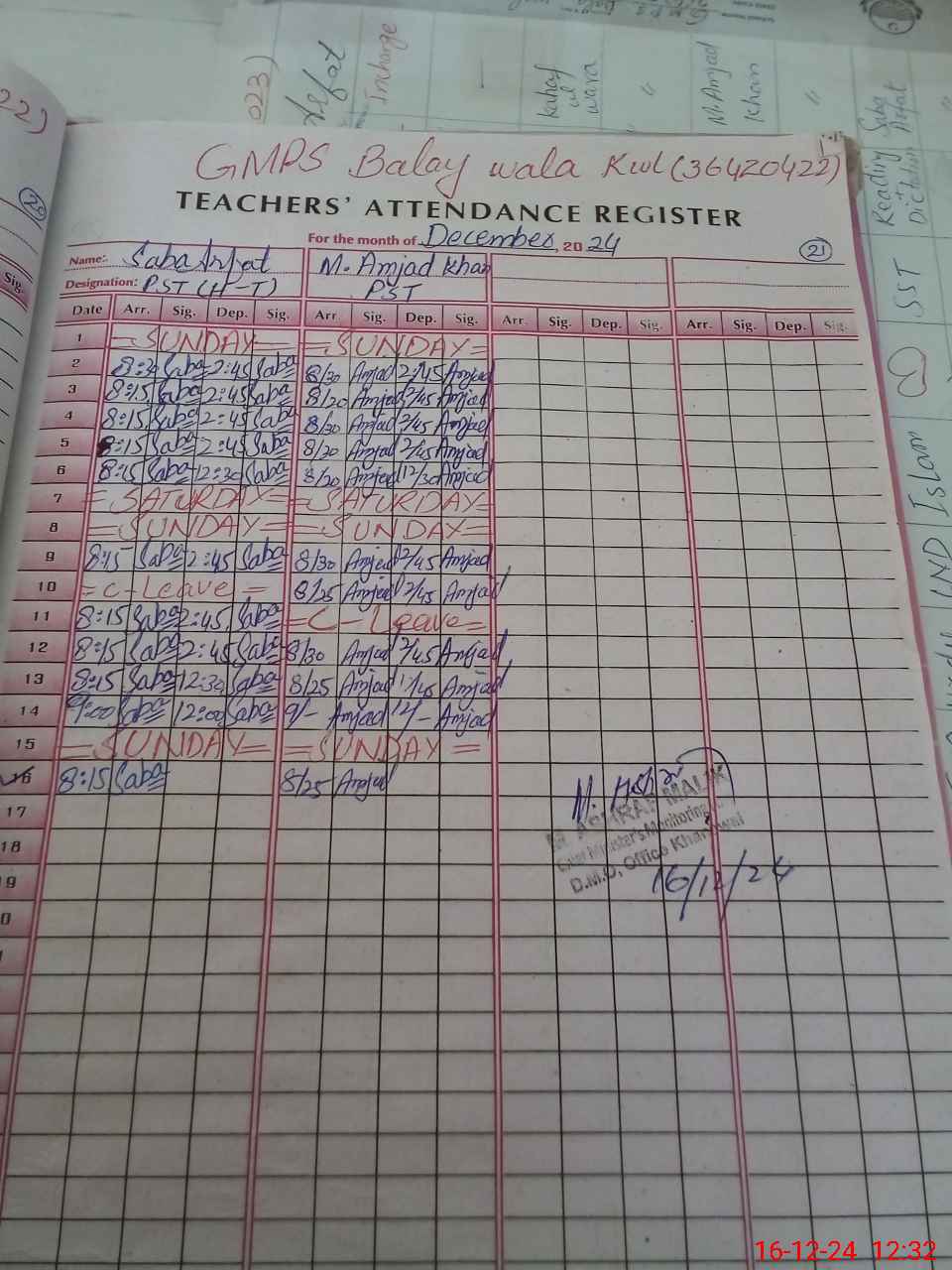 | EMIS Code: 36420422 | Name of School: GMPS BALAY WALA, KHANEWAL | |||