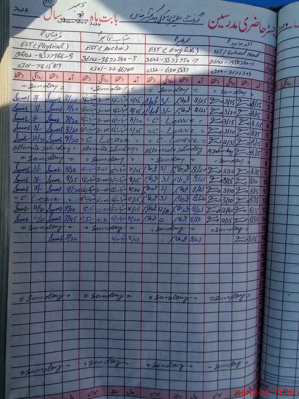 | Name: Am**** Ja**** Designation: (School Headmaster's/Headmistress's) SST (G) Phone/Cell Number: 03**** |