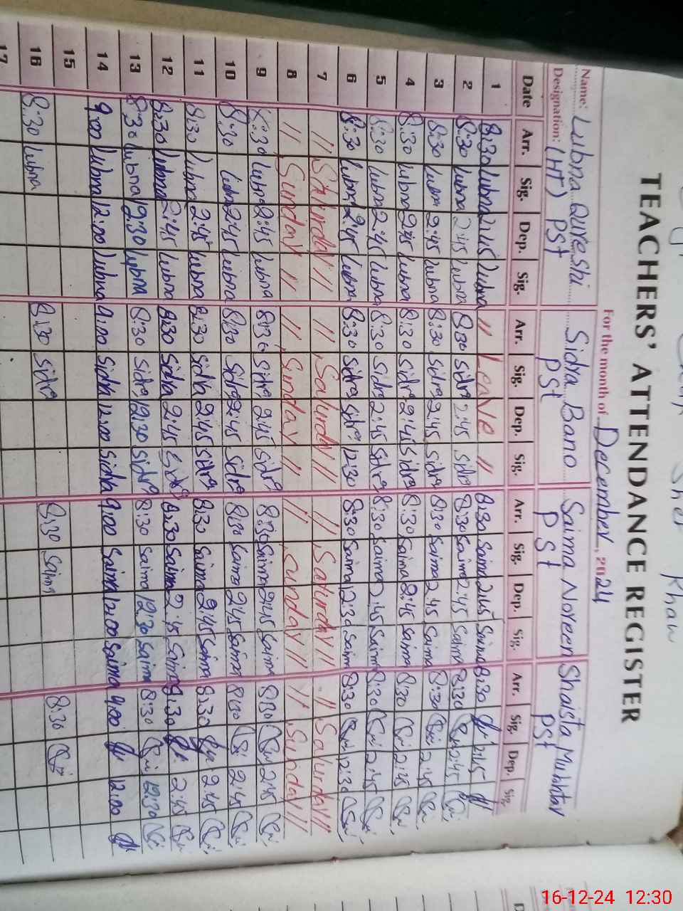 | CNIC | Full Name | Designation | R/C | Absence During Last Calender Month |