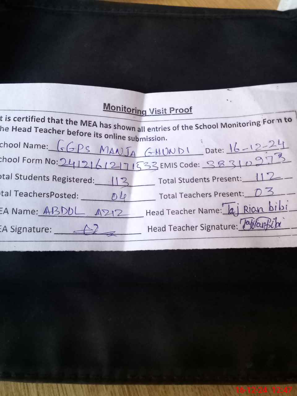 | EMIS Code: 38310273 | Name of School: GGPS MANJA GHUNDI | |||