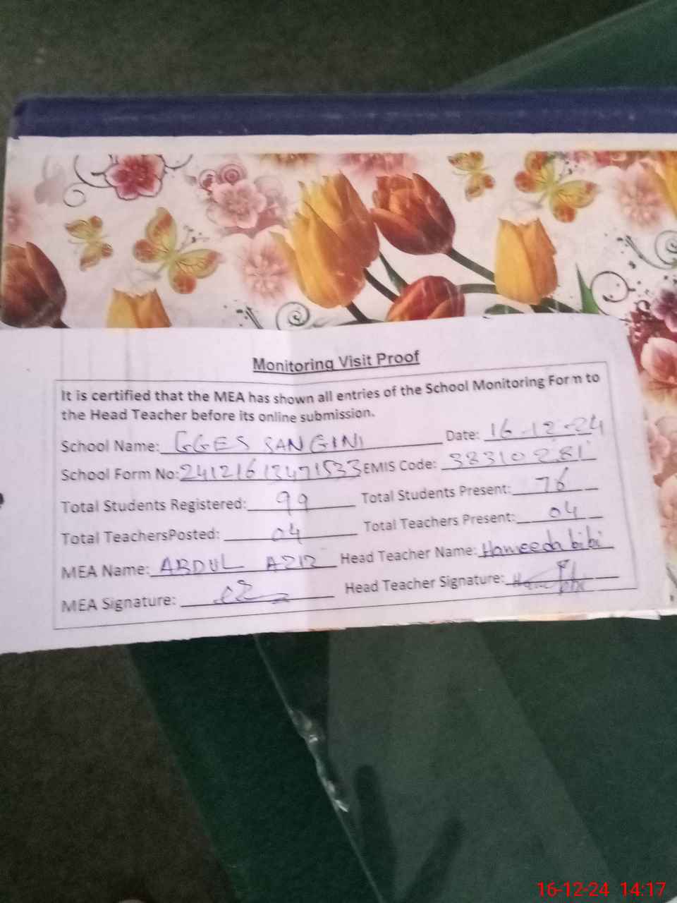| EMIS Code: 38310281 | Name of School: GGES SANGINI | |||
