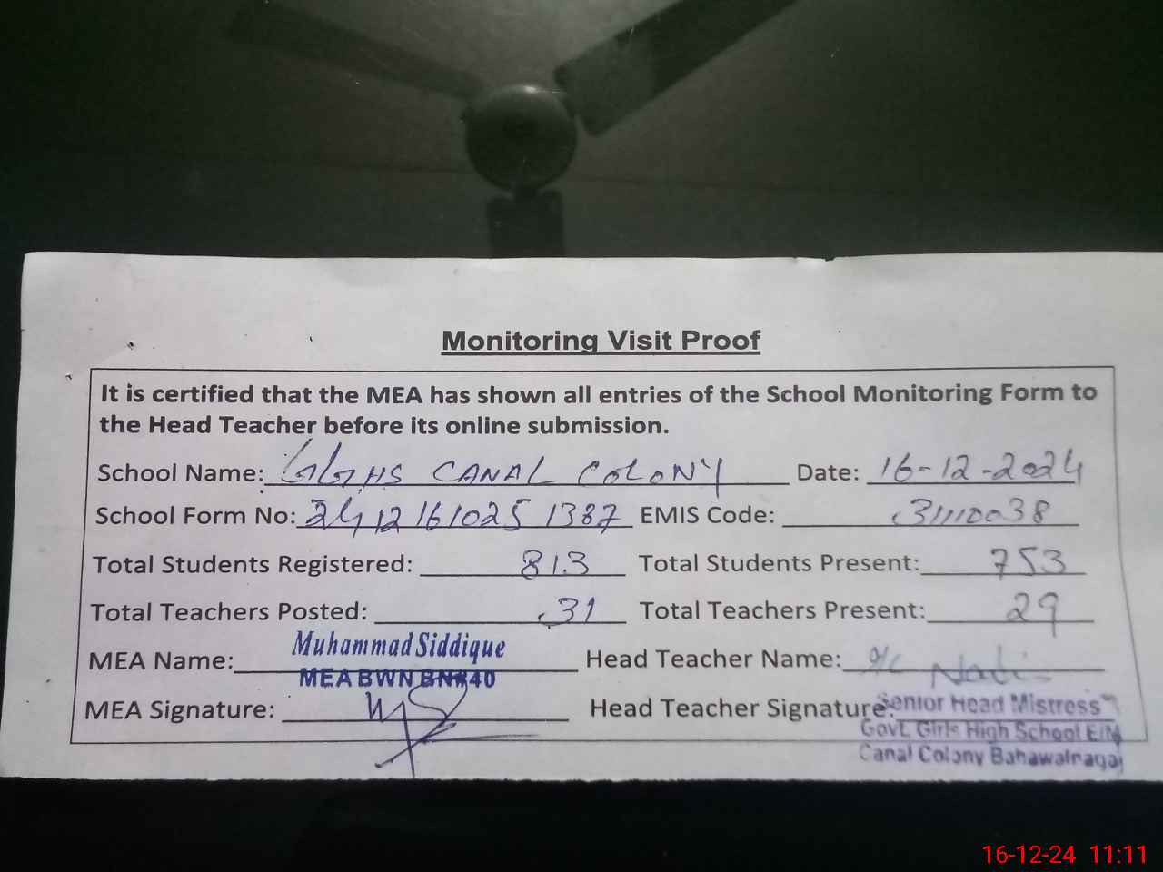 | Certified that this School was Inspected by the Undersigned MEA/DMO Today and the Information Stated Above is as Per Record. | |||||