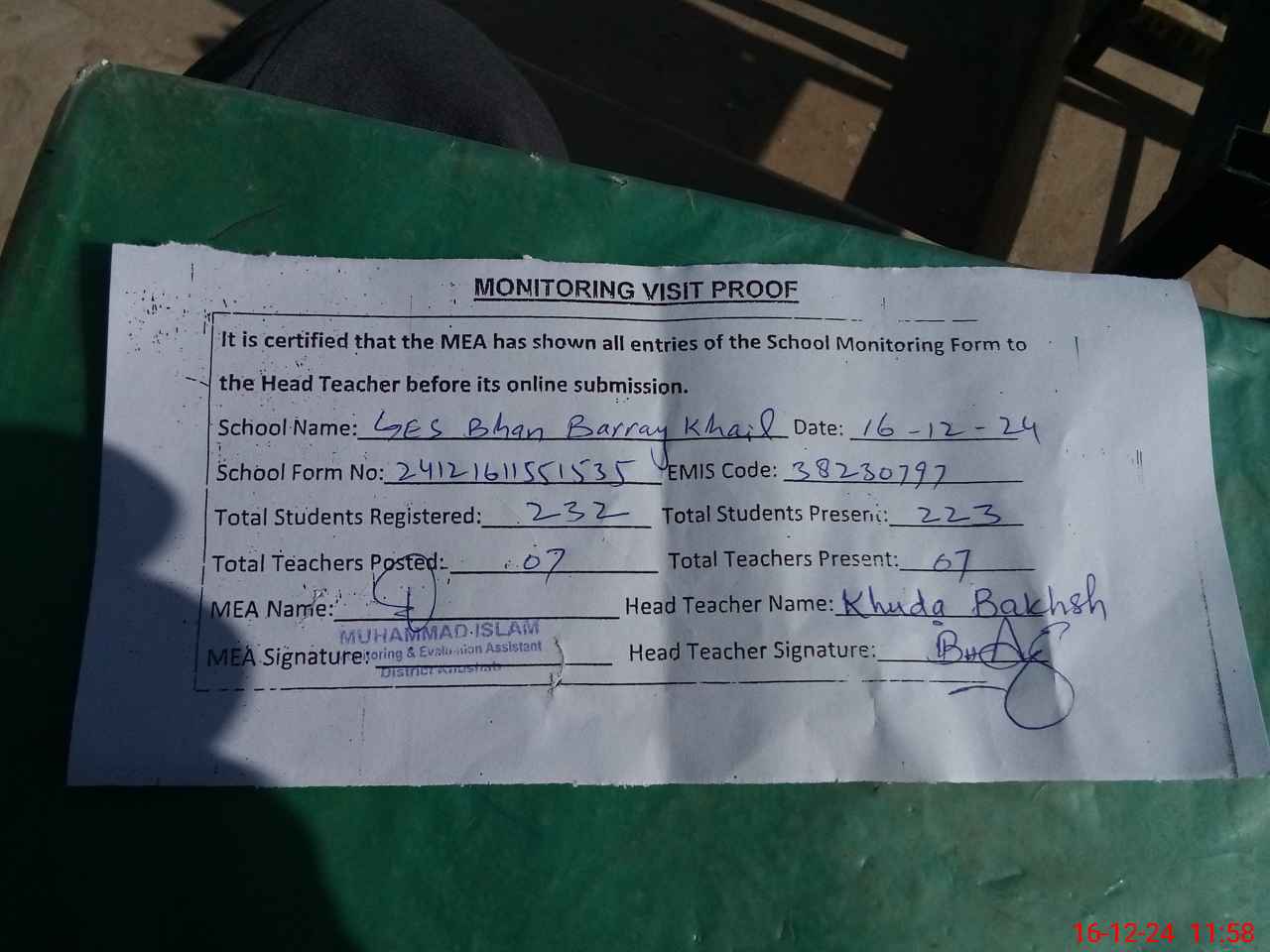 | EMIS Code: 38230797 | Name of School: GES BHAN BARRAY KHAIL | |||