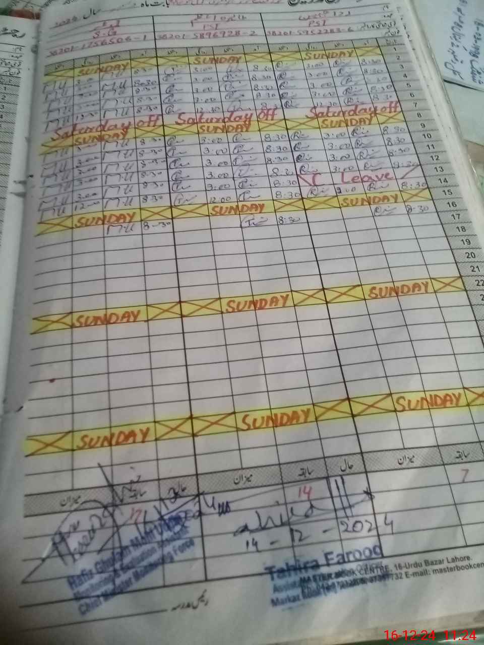 | CNIC | Full Name | Designation | R/C | Absence During Last Calender Month |