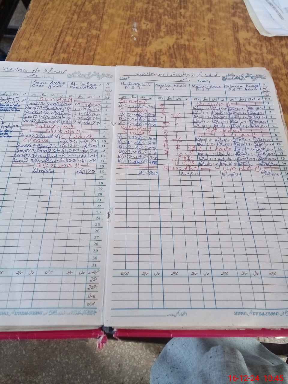 | CNIC | Full Name | Designation | R/C | Absence During Last Calender Month |
