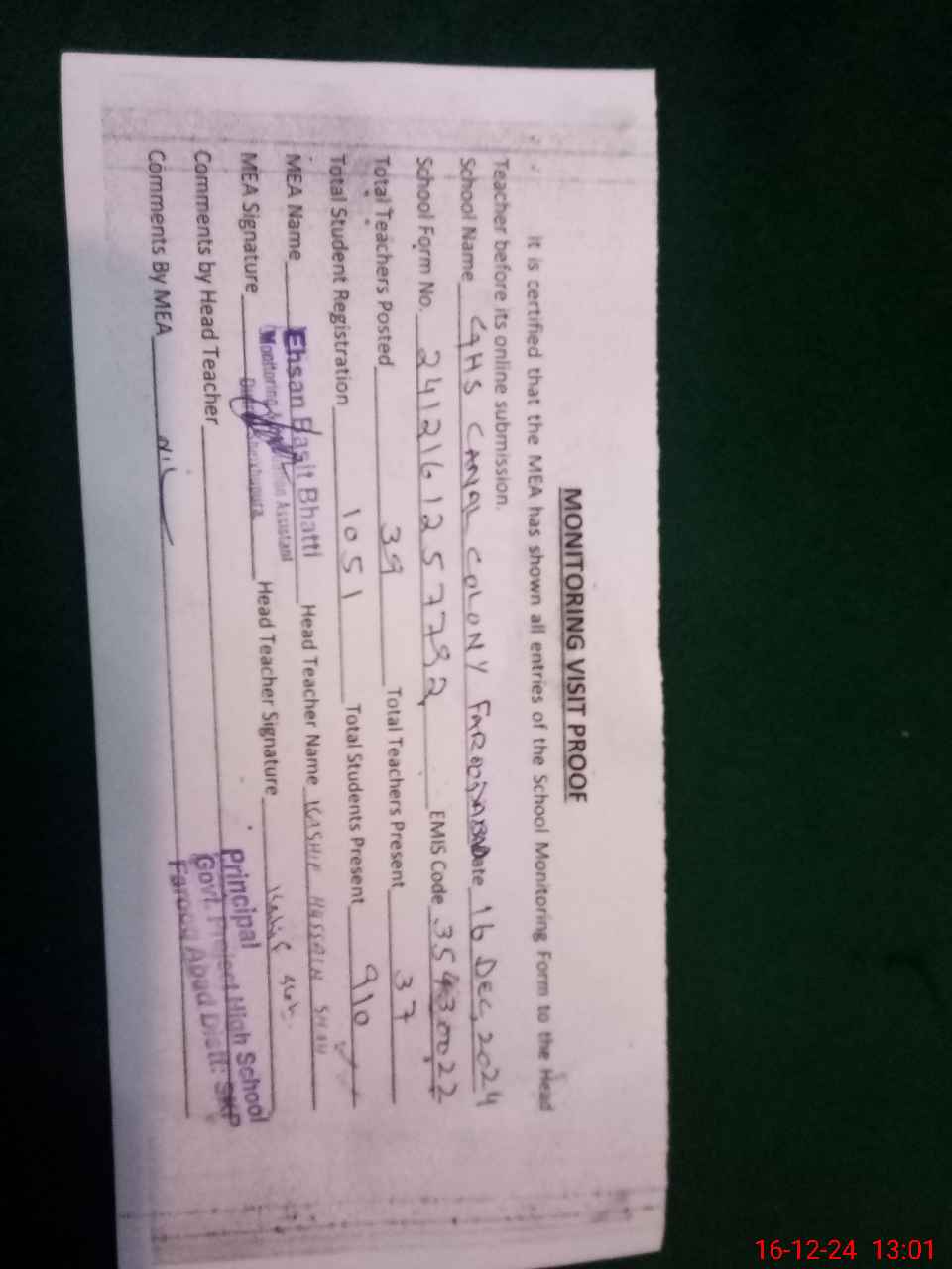 | EMIS Code: 35430022 | Name of School: GHS CANAL COLONY FAROOQ ABAD | |||