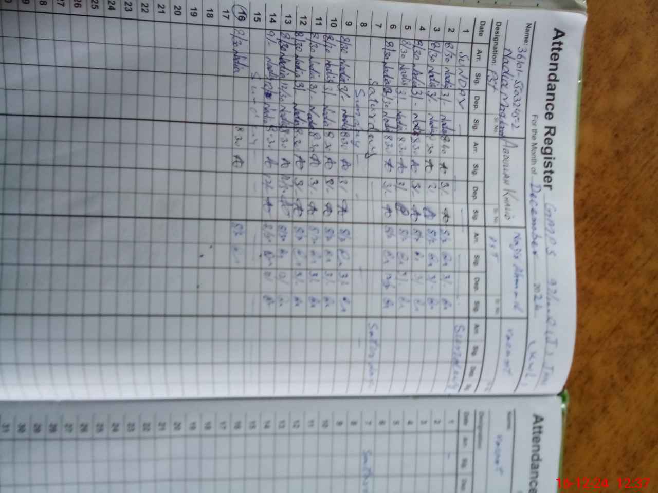 | CNIC | Full Name | Designation | R/C | Absence During Last Calender Month |